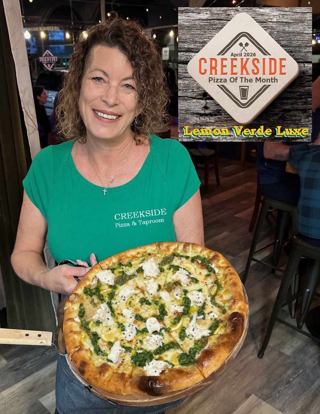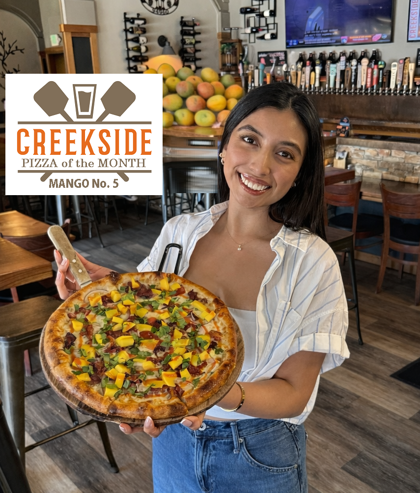 This month’s Central American pizza was created by Creekside’s 2026 Award-winning “Best Server” Soraya Reyes. Recommended beverage pairing: Enjoy Mango No. 5 with a Red Tail Amber Ale, Faction Lager, or a glass of Sauvignon Blanc.